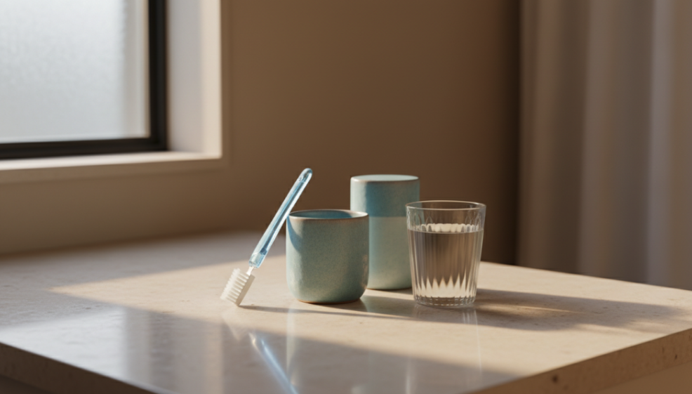 就寝時には、入れ歯を外して洗浄剤に浸けておくと清潔に保てます。乾燥すると変形の原因となるため、必ず水中で保管してください。熱湯は素材を変形させる可能性があるため、使用しないようにしましょう。