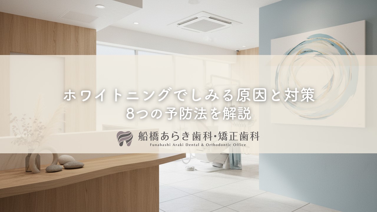 船橋あらき歯科・矯正歯科では、患者さんの歯の状態に合わせた安全で効果的なホワイトニングを提供しています。しみや痛みが心配な方も、まずはお気軽にご相談ください。