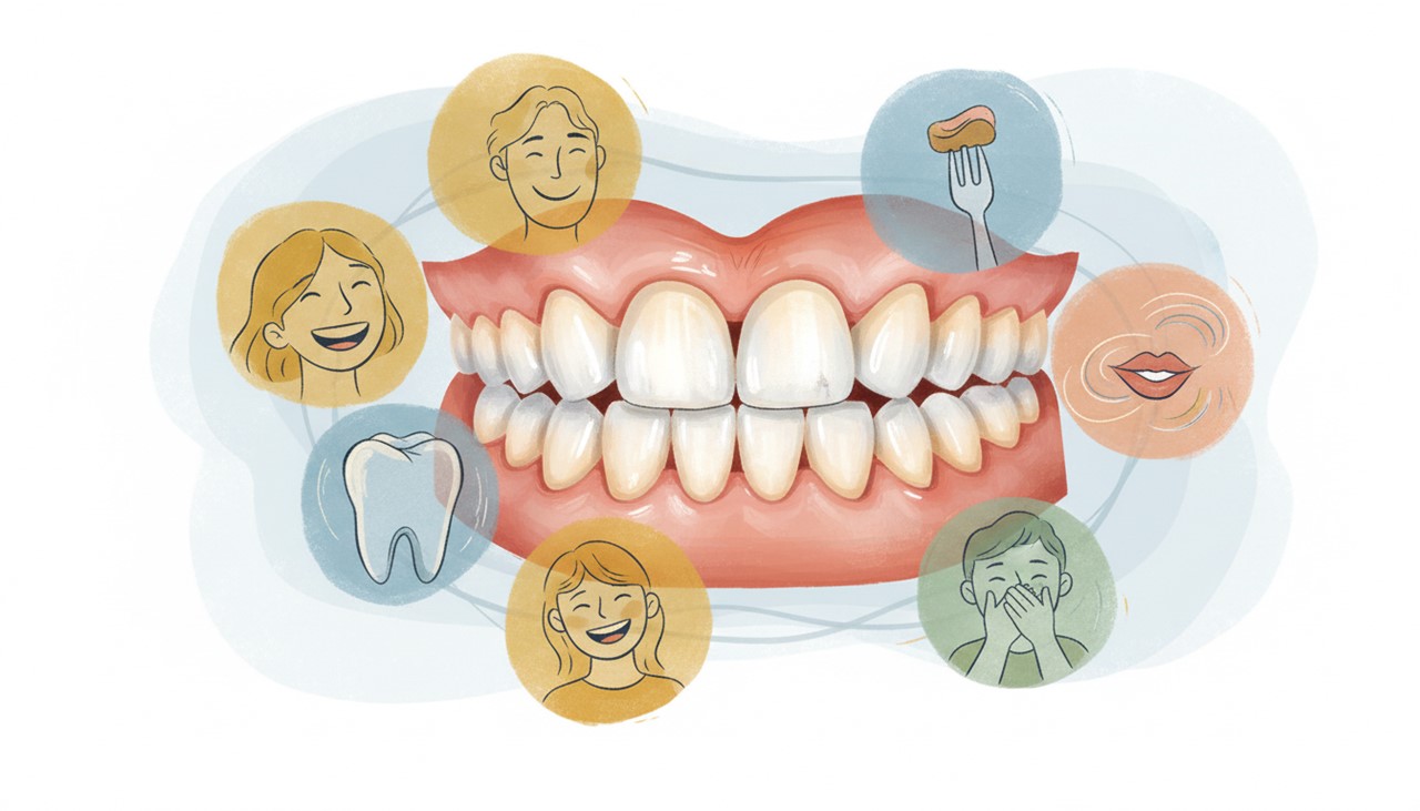 サ行やタ行が発音しにくくなったり、前歯で食べ物を噛み切りにくくなったりするケースも少なくありません。