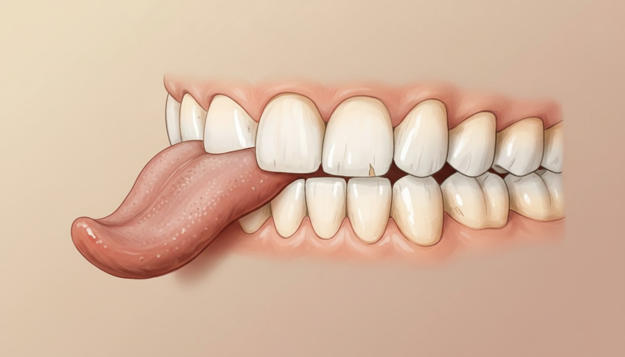 舌を歯に押し付ける「舌癖」がある場合、前歯が内側から押されて歯の間が広がりやすくなります。