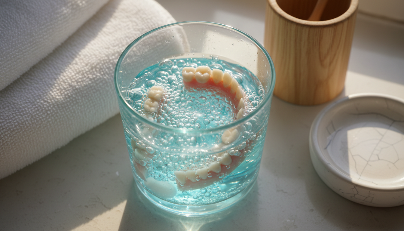 就寝前のお手入れ ― 入れ歯洗浄剤を活用する