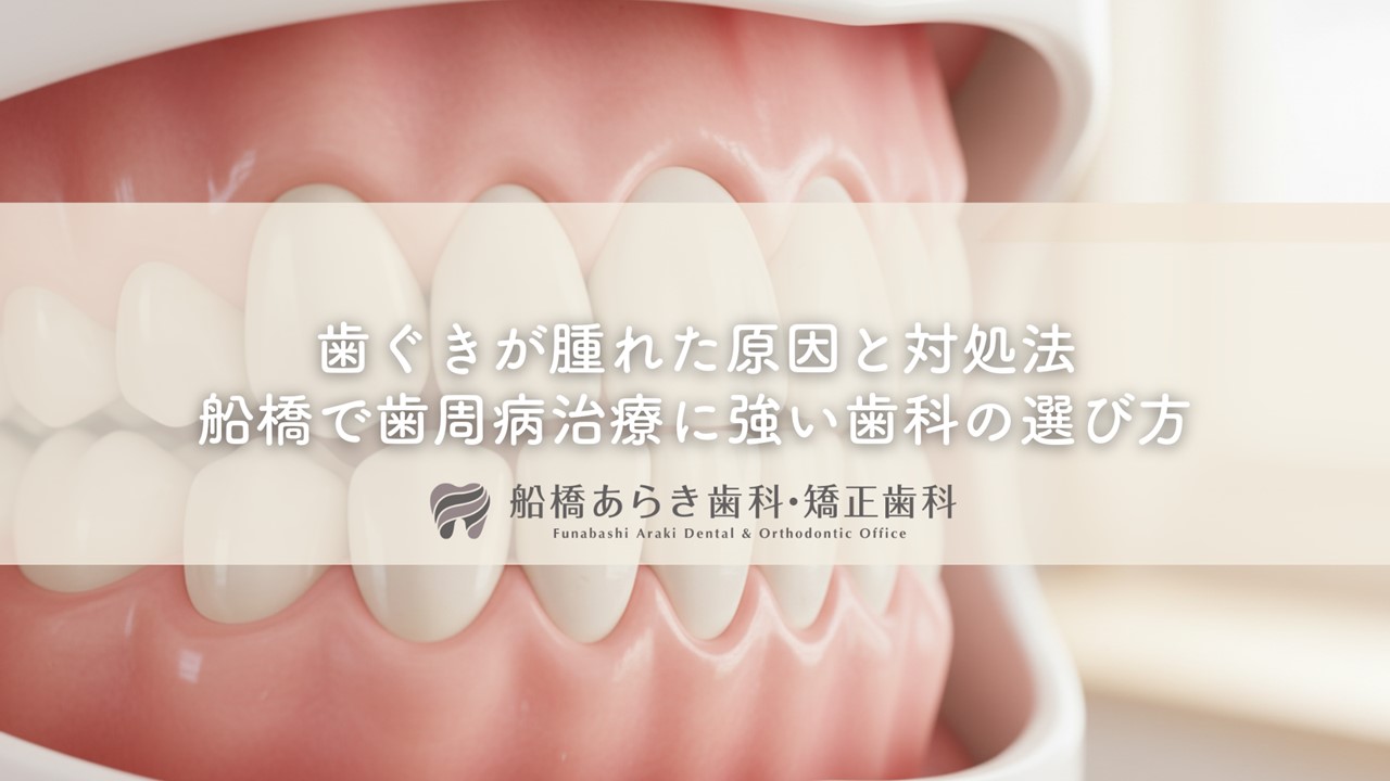 歯ぐきの腫れは、お口の中で何らかのトラブルが起きているサインです。痛みがないからといって放置すると、症状が悪化し、最終的には歯を失うリスクもあります。船橋駅周辺で歯科医院をお探しの方に向けて、歯ぐきが腫れる原因と適切な対処法、そして治療を受けられる歯科医院の選び方をお伝えします。