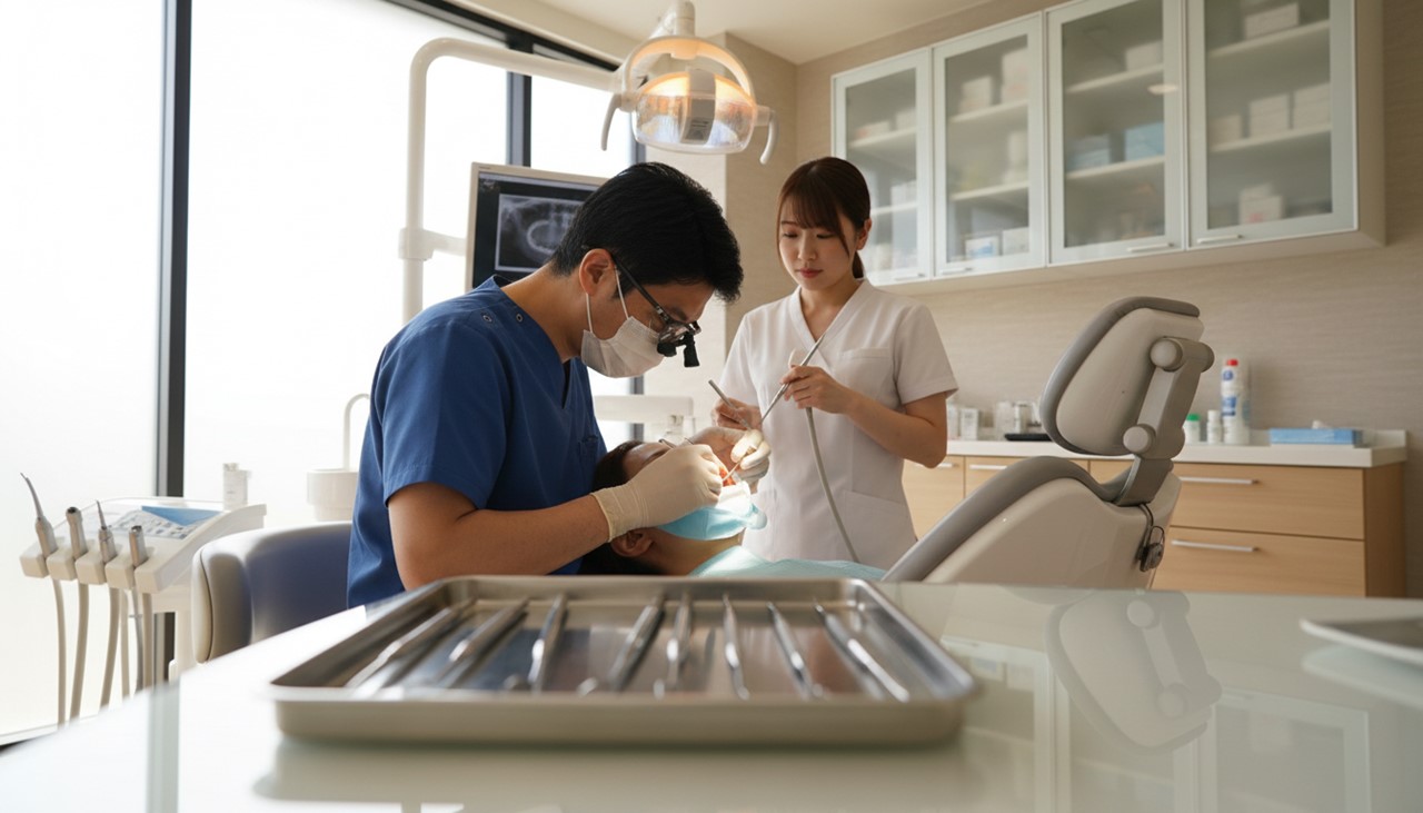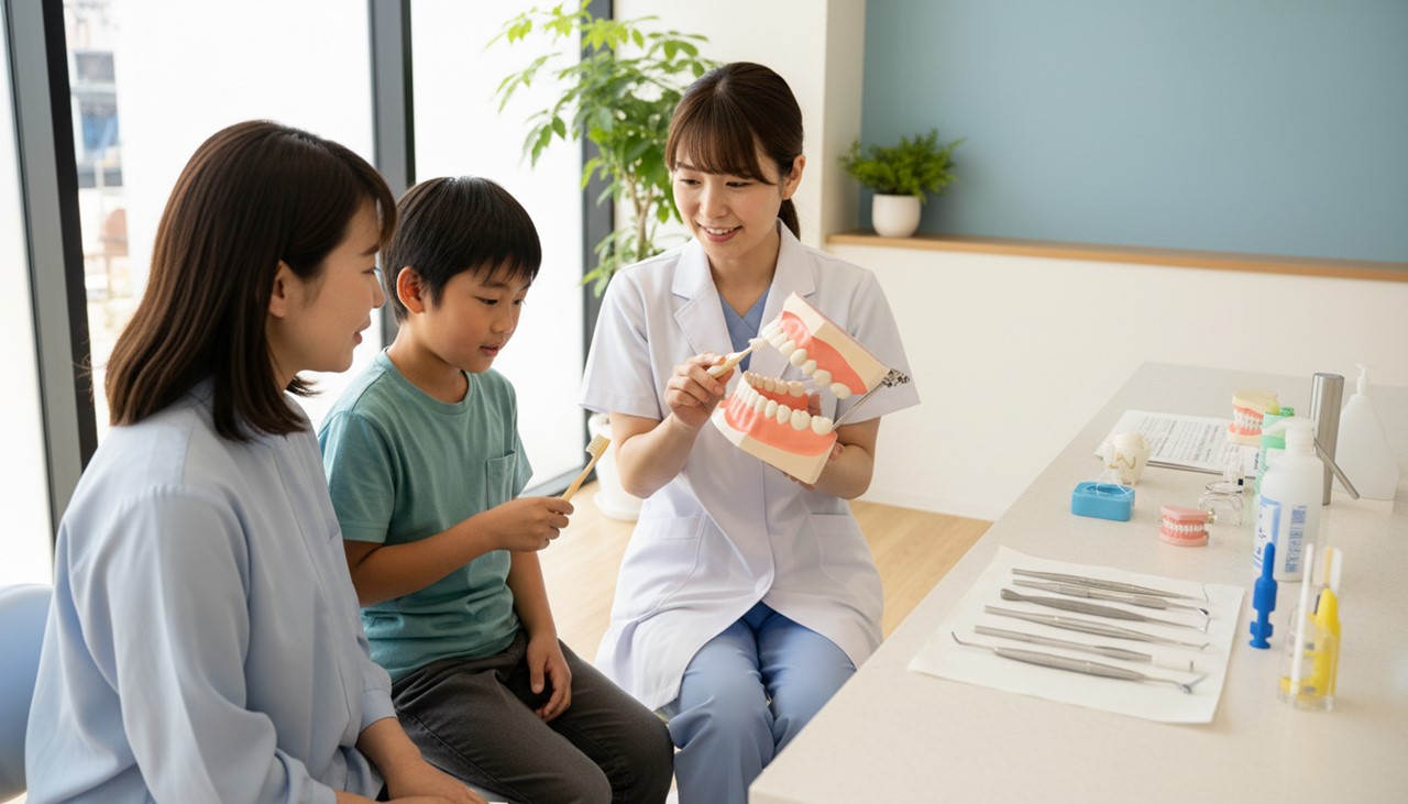 まず、プラークコントロールとして、正しい歯磨き方法の指導を行います。歯周病の原因となる歯垢を日常的に除去できるようにすることが、治療の第一歩です。次に、スケーリングという処置で歯石を除去します。歯石は歯ブラシでは取り除けないため、専用の器具を使って除去します。さらに進行している場合は、ルートプレーニングという処置で、歯の根の表面を滑らかにし、細菌が付着しにくい状態にします。