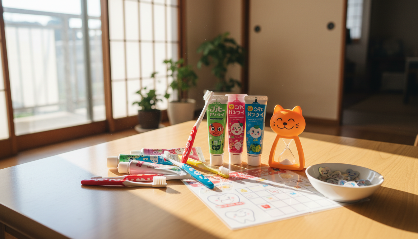子ども向けのフルーツ味やキャラクターデザインの歯磨き粉を選ぶと、歯磨きの時間が楽しみになります。