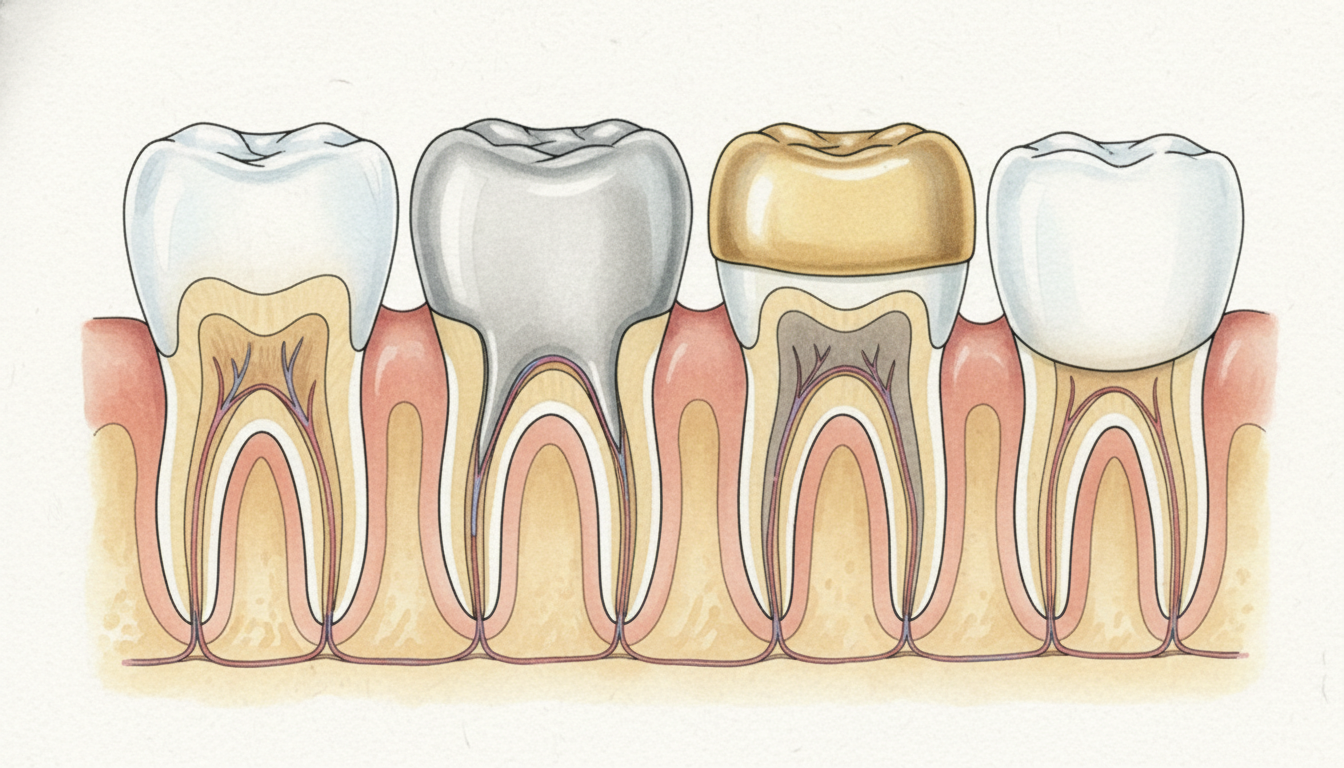銀歯などの金属の詰め物や被せ物をしていると、金属イオンが溶け出して歯が黒ずんで見えることがあります。
