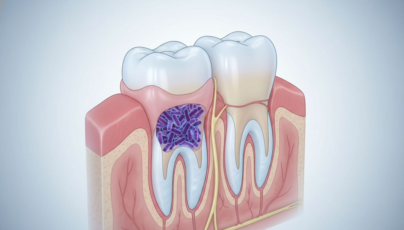 虫歯が進行すると、冷たいものや熱いものがしみる、甘いものを食べると痛む、噛むときに痛むといった症状が現れます。さらに虫歯が神経にまで達すると、我慢できないほどの激しい痛みを感じることがあります。